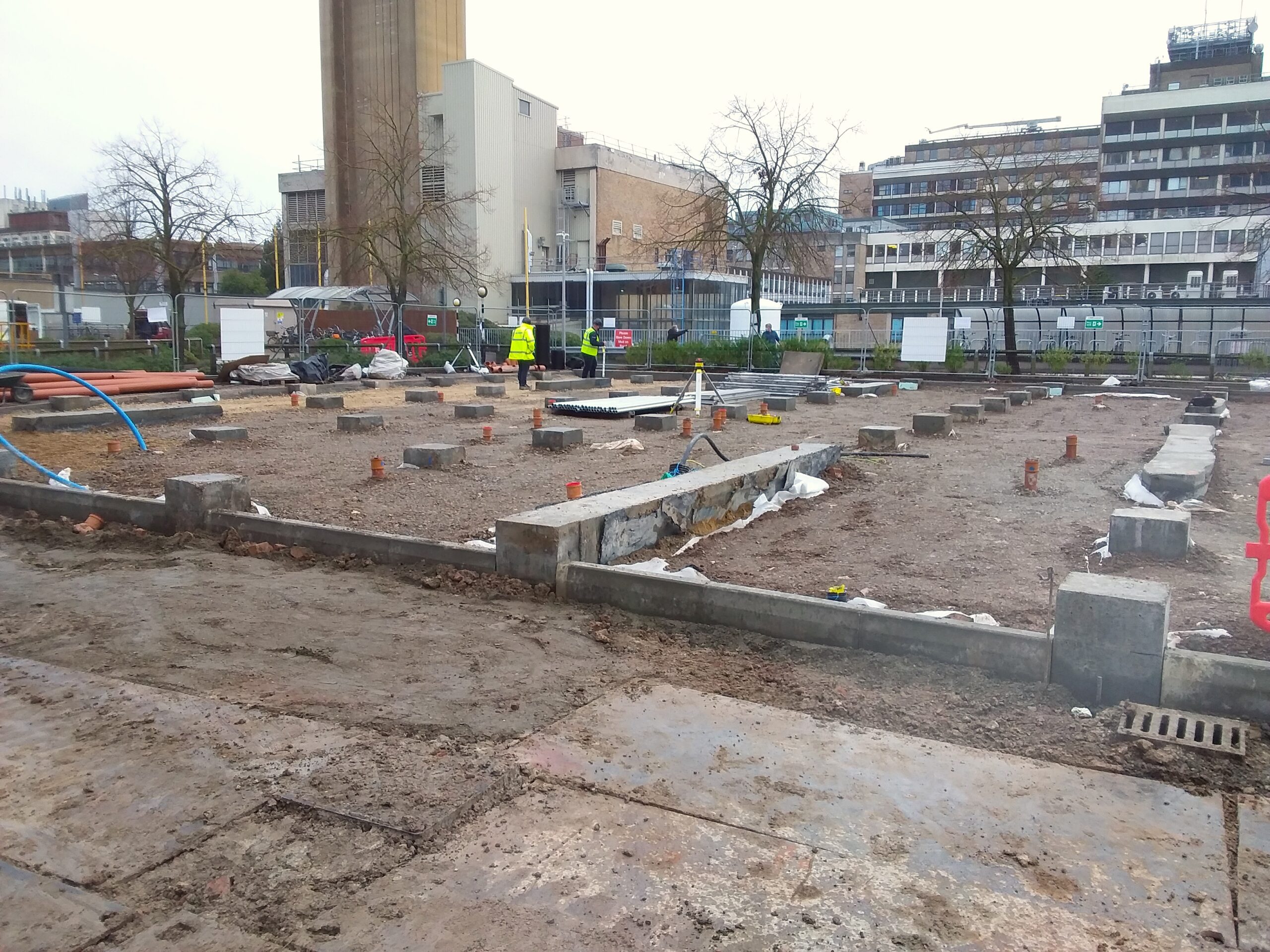 Concrete pads were used for the modular building’s foundations and reinforced plinths were then cast on top. New drainage was connected, and a pre-cast concrete trough was installed for the service ducting to ensure an existing service tunnel was not damaged.