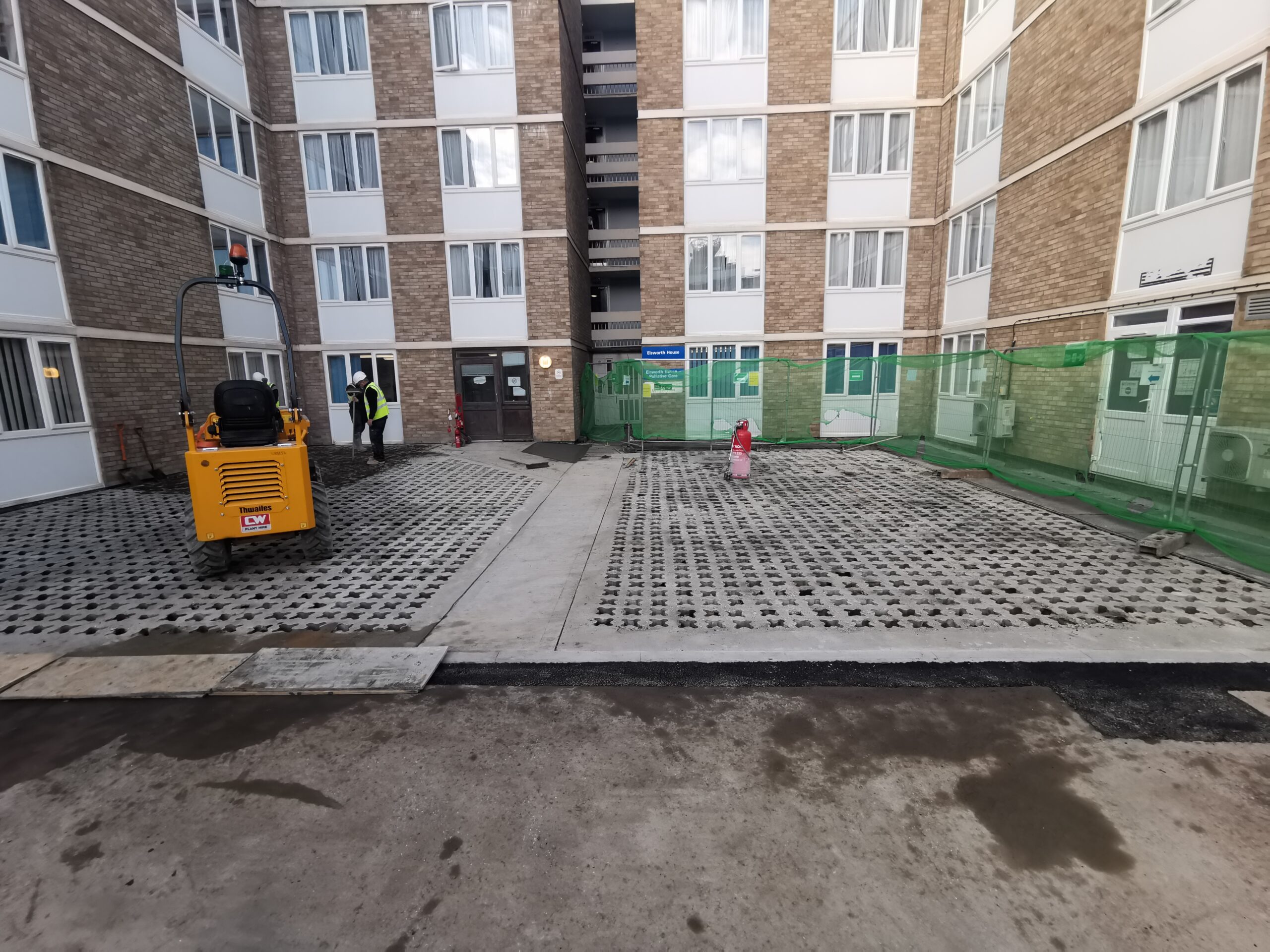 One of the main challenges during the project’s early stages was the discovery of asbestos in the existing drainage and service areas, which had to be safely removed by a specialist team. In areas where the asbestos was identified as low risk, Shanco continued to deliver the groundworks using specialist PPE and face-fit respirators. Equipment had to be thoroughly cleaned each day and clothing safely disposed of once each section of work had been completed.
