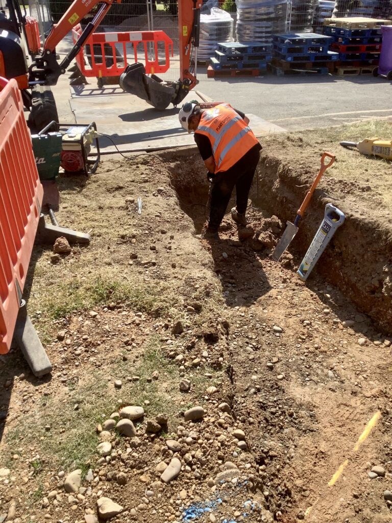 We also identified asbestos in some of the working areas, necessitating specialised procedures and safety measures to contain and remove it according to the Control of Asbestos Regulations. The new service route crossed a mixture of soft and hard landscaped areas, including the main access road through the facility, meaning a carefully sequenced route was essential to ensure access was maintained 24/7.