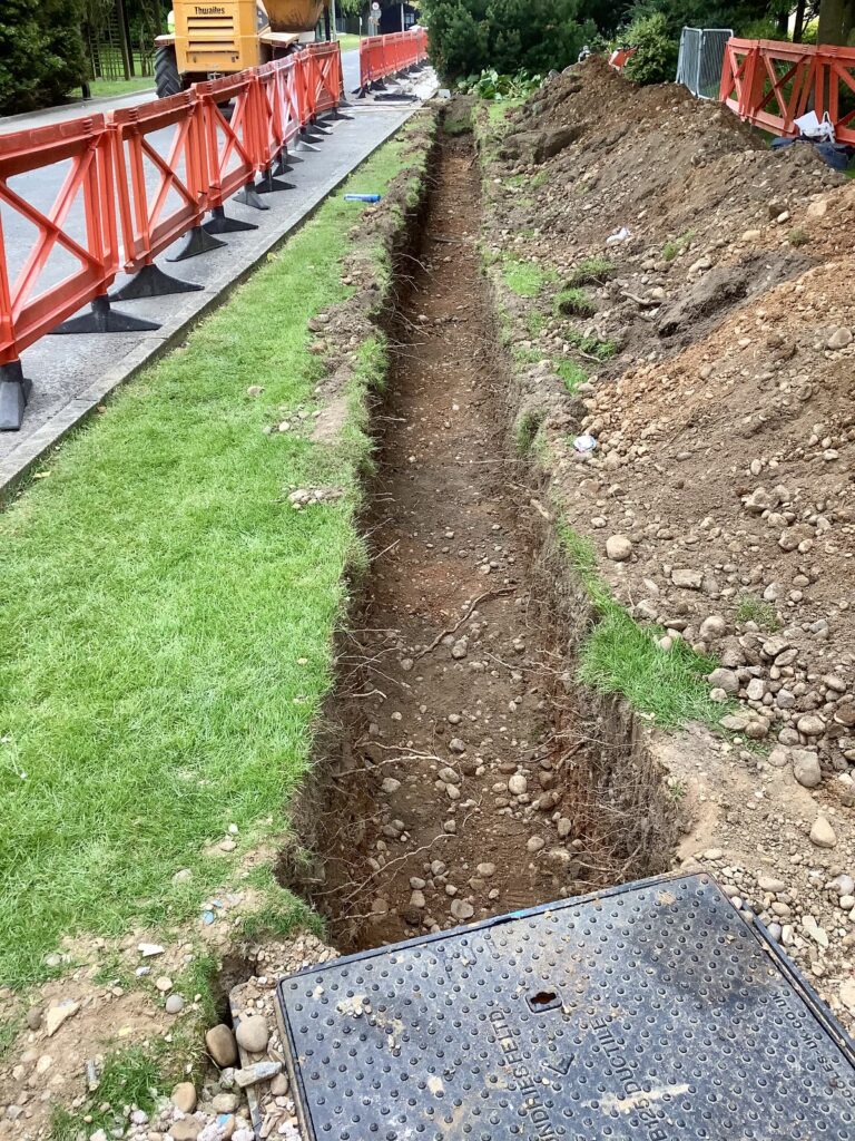 We also identified asbestos in some of the working areas, necessitating specialised procedures and safety measures to contain and remove it according to the Control of Asbestos Regulations. The new service route crossed a mixture of soft and hard landscaped areas, including the main access road through the facility, meaning a carefully sequenced route was essential to ensure access was maintained 24/7.