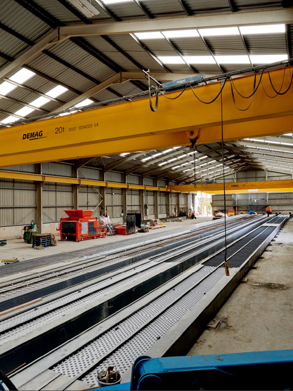 Shanco was responsible for casting 85m long plinth beds ahead of the main commissioning of the lintel extrusion plant. The scope also included alterations to the existing service slab to accommodate new equipment slabs and a waste disposal system. As part of the upgrade, Shanco installed a two-metre deep pre-cast concrete holding tank on a cast in-situ reinforced concrete slab, alongside concrete channels for a series of rails used to support the extrusion process.