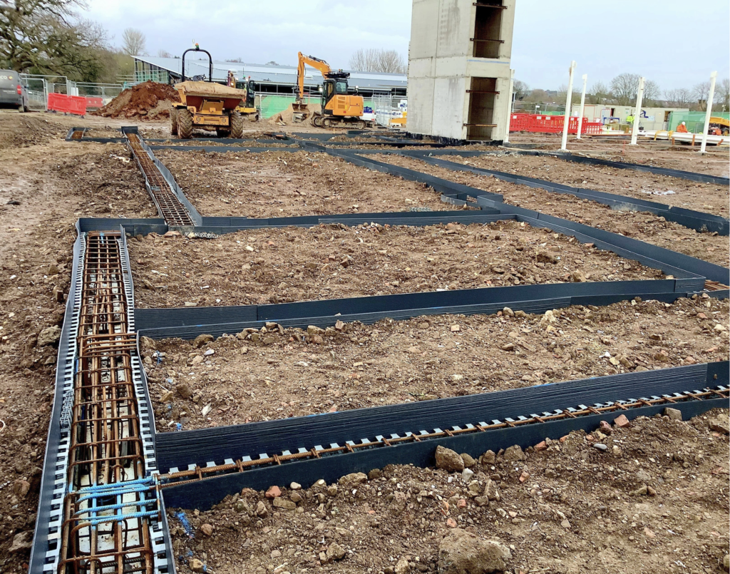 The project involved various elements of works, including the initial enabling works, the formation of a Geogrid reinforced piling platform, setting out and cropping 230 steel driven piles, the installation of some 720 linear metres of reinforced ground beams and two cast in-situ reinforced concrete lift pits. We also installed the full drainage package for the works, incorporating internal and external drainage runs, flow control systems, permeable areas and offsite connections, falling under NRSWA requirements with the local authority.