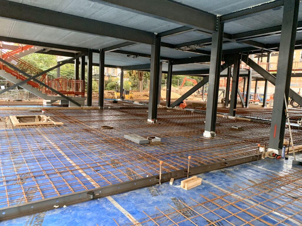 For the ground floor, Shanco cast a suspended reinforced concrete slab with a power float finish. This included comprehensive gas and waterproofing solutions in collaboration with Visqueen for the design specification. Shanco also completed the external landscaping, including surfacing, street furniture, terraced seating arrangements, and RC staircases, while managing logistics seamlessly alongside other contractors.