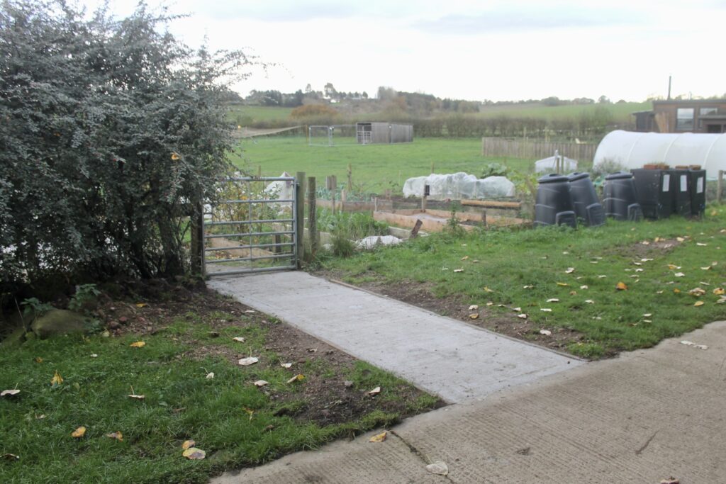 Recently, we returned to community interest company Living Potential to lay down two new concrete pathways. This increased accessibility for their wheelchair users, and alongside a new rainwater drainage system has been a welcome addition to the farm and the people they support.
